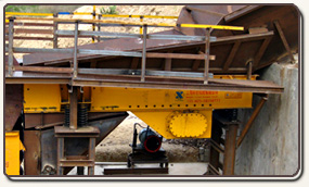振動(dòng)給料機(jī)在工作過(guò)程中可把塊狀、顆粒狀物料從貯料倉(cāng)中均勻、定時(shí)、連續(xù)地送入受料裝置,在砂石生產(chǎn)線中可為破碎機(jī)械連續(xù)均勻地喂料,并對(duì)物料進(jìn)行粗篩分。